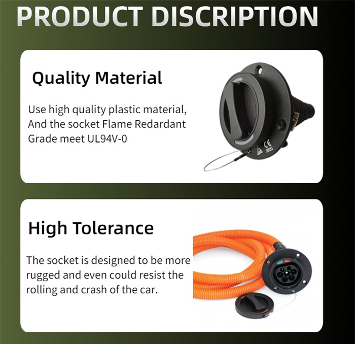 - Product description: The 11KW EV type 2 socket is designed to be installed on electric vehicles as an electric vehicle charging inlet, and its sturdy quality is a good choice for your electric vehicle.