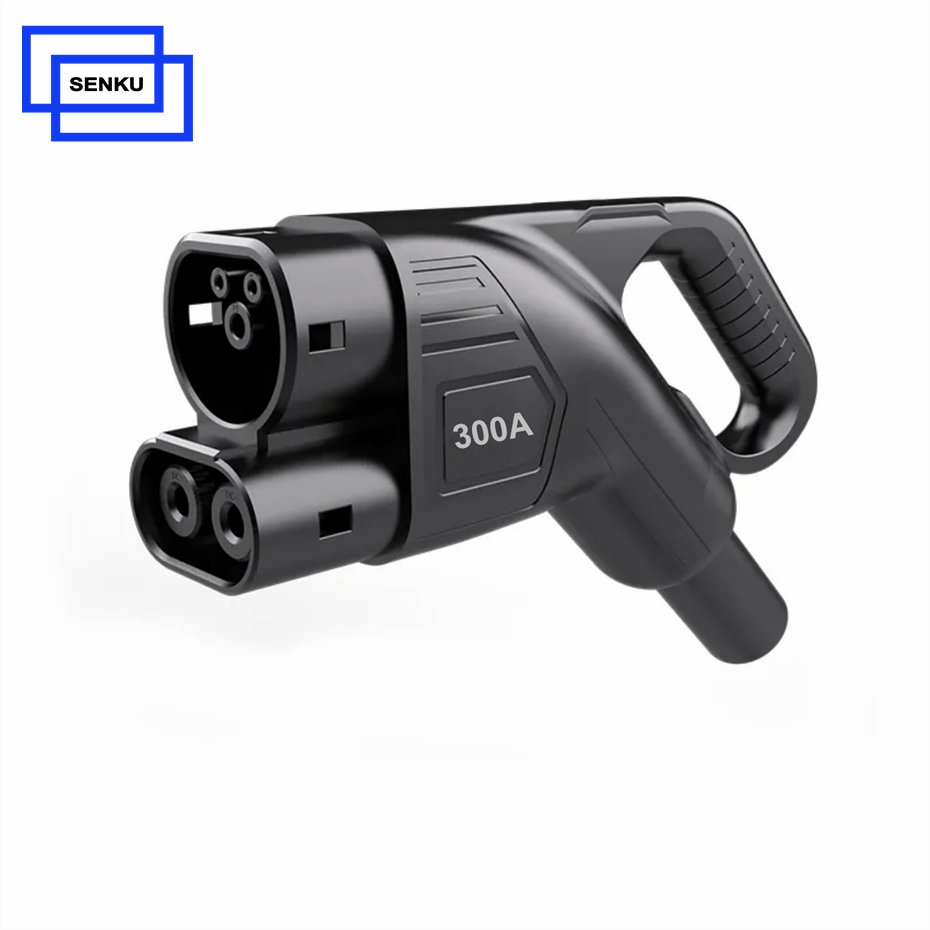 - Product description: The CCS plug and cable of the electric vehicle charger used in the 300A high-power electric vehicle charging system produced by SENKU have undergone performance tests such as high temperature resistan