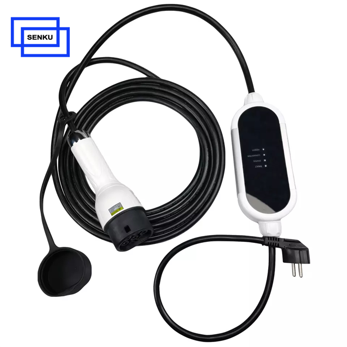 Mode 2 portable electric car chargers are used for charging EVs and are typically included in the vehicle's portable kit. These chargers connect to regular household outlets, making them suitable for use at home or on the go. Senku Mode 2 portable electric car chargers come with a control box that has basic safety features like overheating and leakage protection, ensuring a safe charging process. They are great for overnight charging after daily short trips, offering a flexible and convenient solution.
