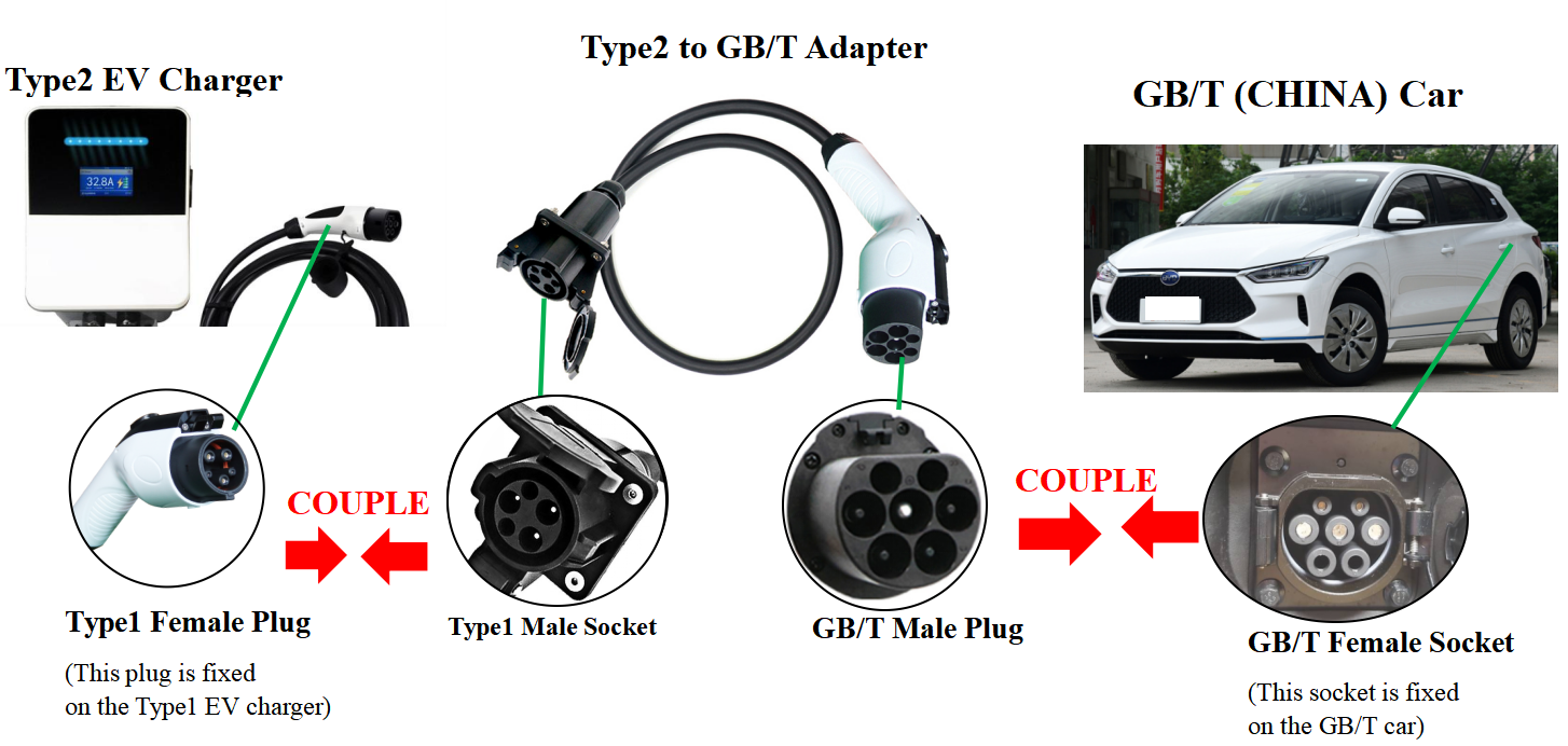 - Product description: Type 1 SAE J1772 to GBT EV Charging Adapters, cable length customized.